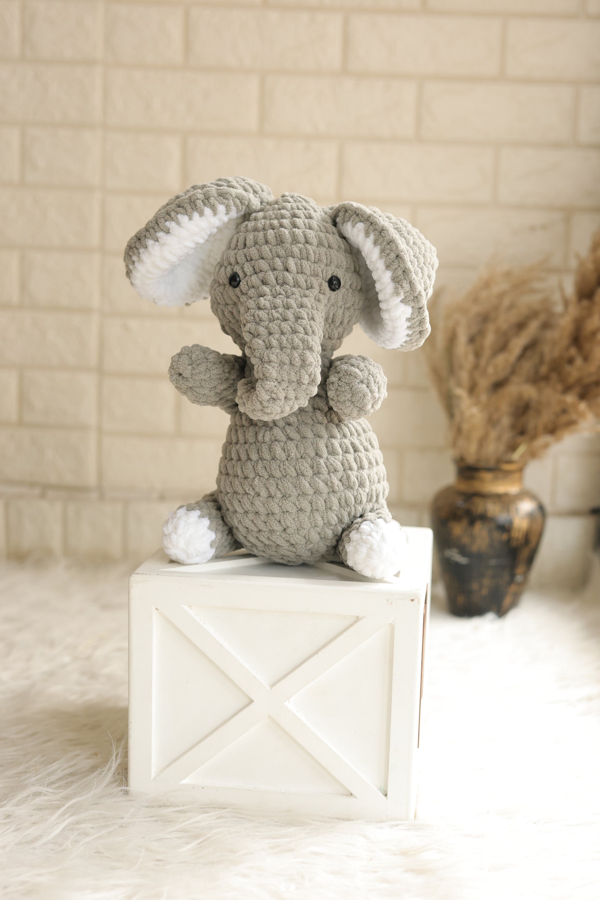 Handmade Crochet Elephant – 10–11 Inches Grey