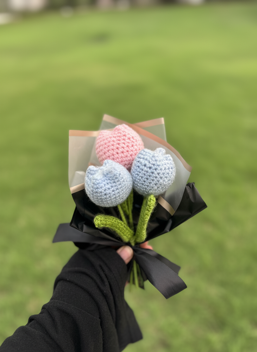Delicately handcrafted with premium Ganga yarn, this mini tulip blooms with soft blue and pink hues — perfect for adding a gentle charm to any corner. Each petal is crocheted with love, ensuring durability and a beautiful handmade touch.
