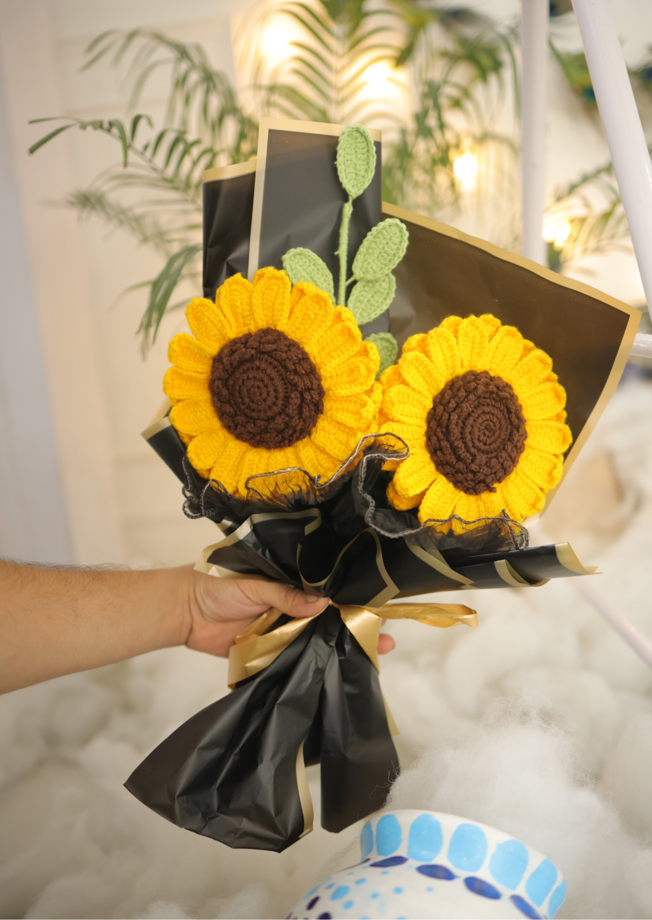 A handcrafted bouquet of crochet flowers, made with love and care. The bouquet measures 14 inches and can be easily customised to suit your style, colour preference, or occasion.